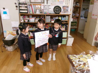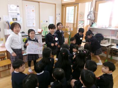 お帰りの時間に幼児クラスと職員室に届けにいきました!