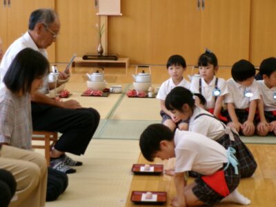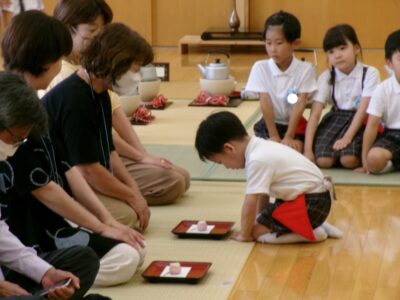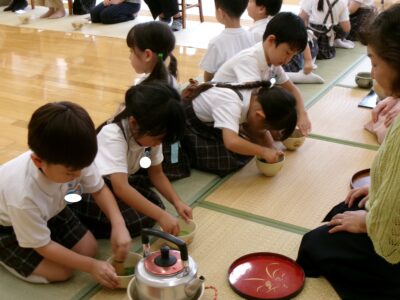 緊張している様子もありましたが、いつも通り美味しいお茶をたてることができました。