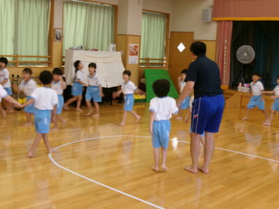 準備体操のあと、かかしおにをみんなでしました。