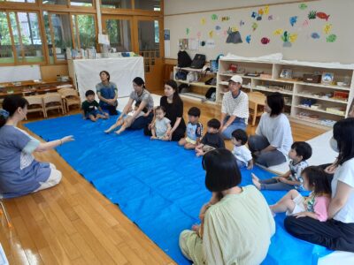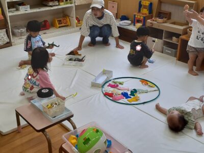夏あそびをしよう!と、朝の会では