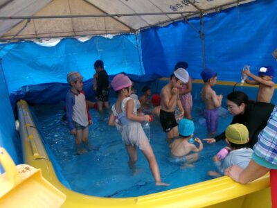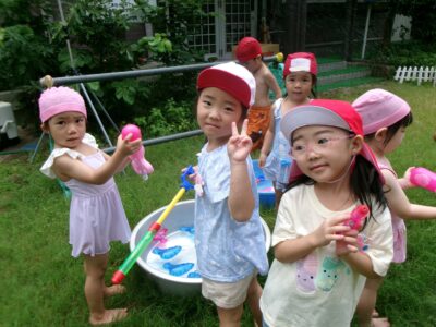 お外で水遊びをしたよ!
