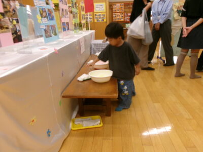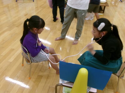 ホールには寒天あそびや聴診器を使った体験などが